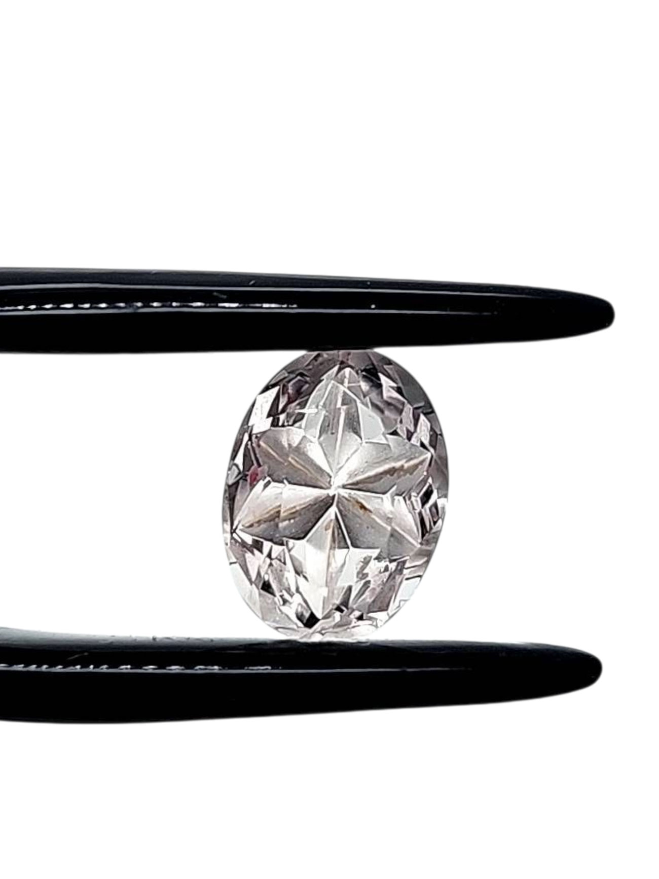 Two stone set, matching ovals. Faint pink to clear color