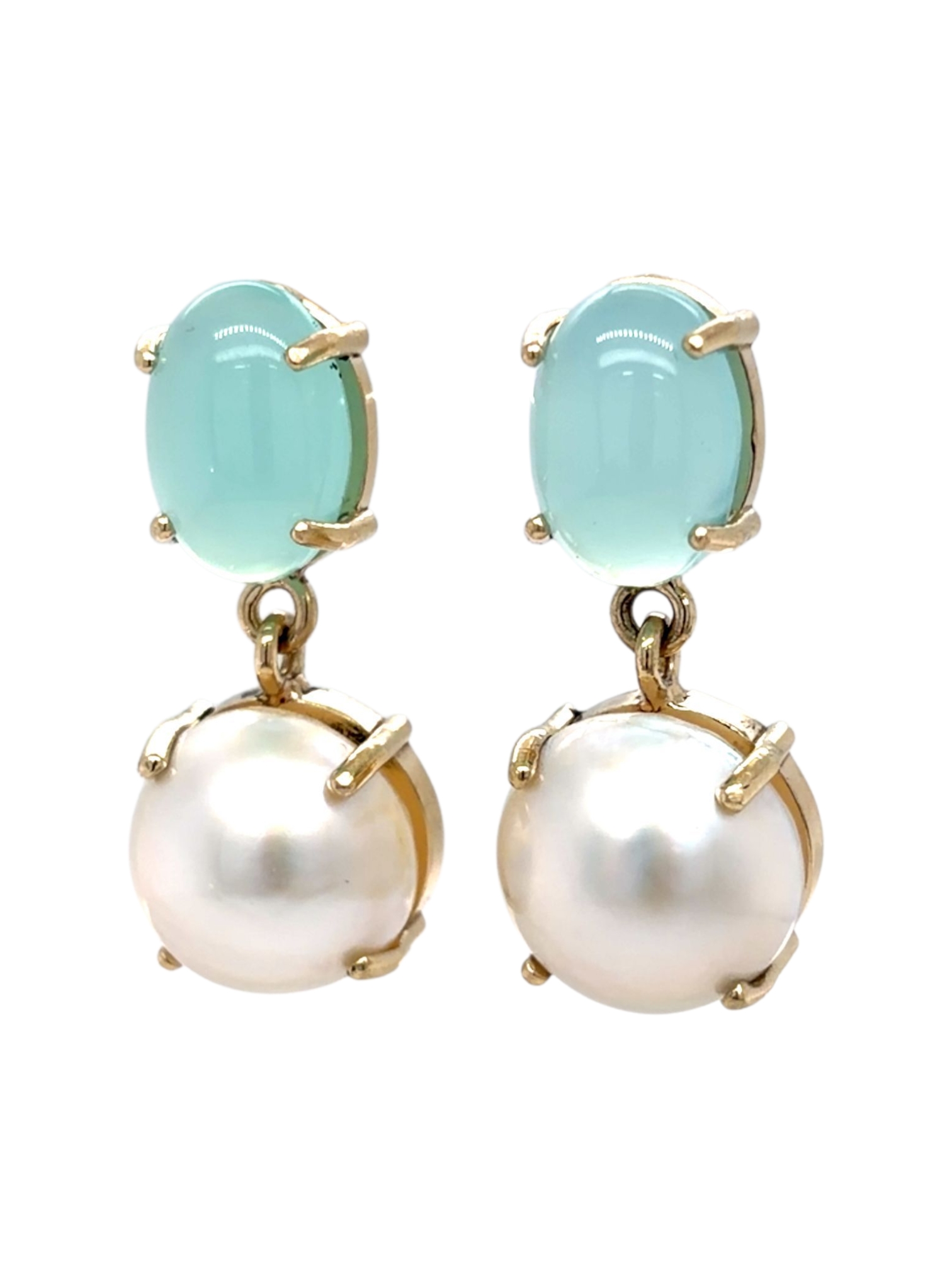 - Main Stone: Blue Chalcedony and Mabè Pearl