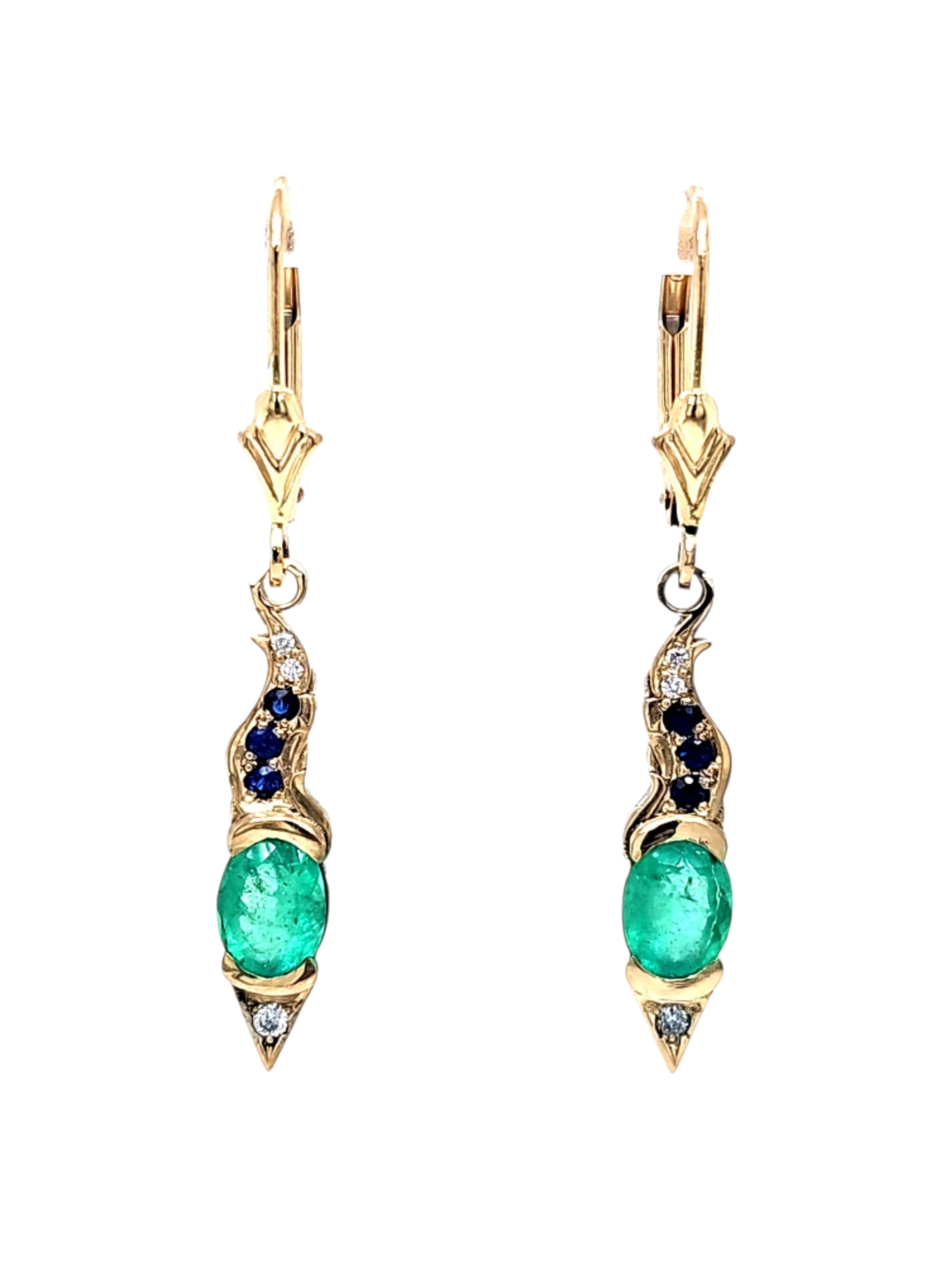 Emerald Sapphire and Diamond Earrings