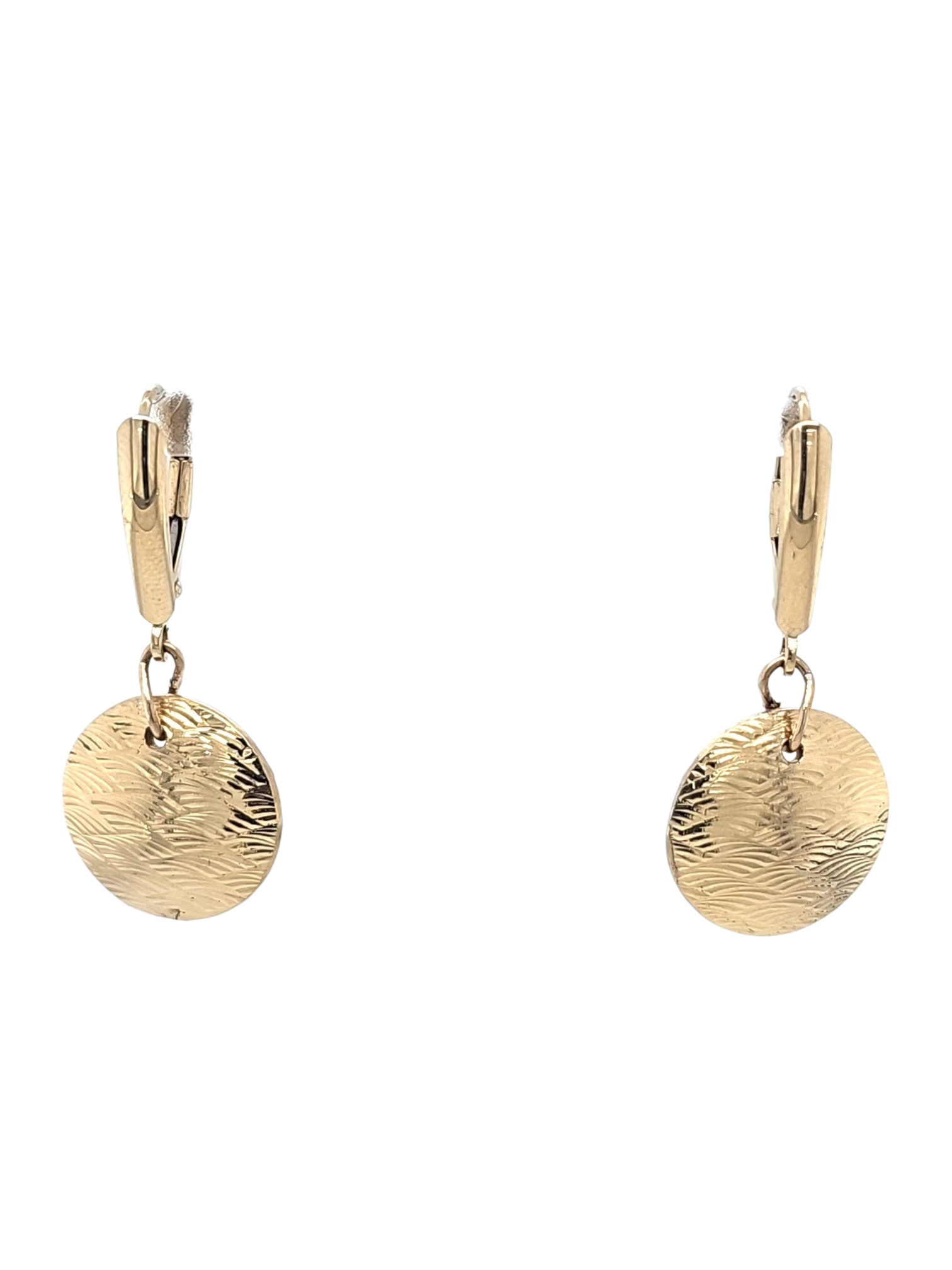 14kt Yellow Gold Guilloche Round Pendant and Earrings