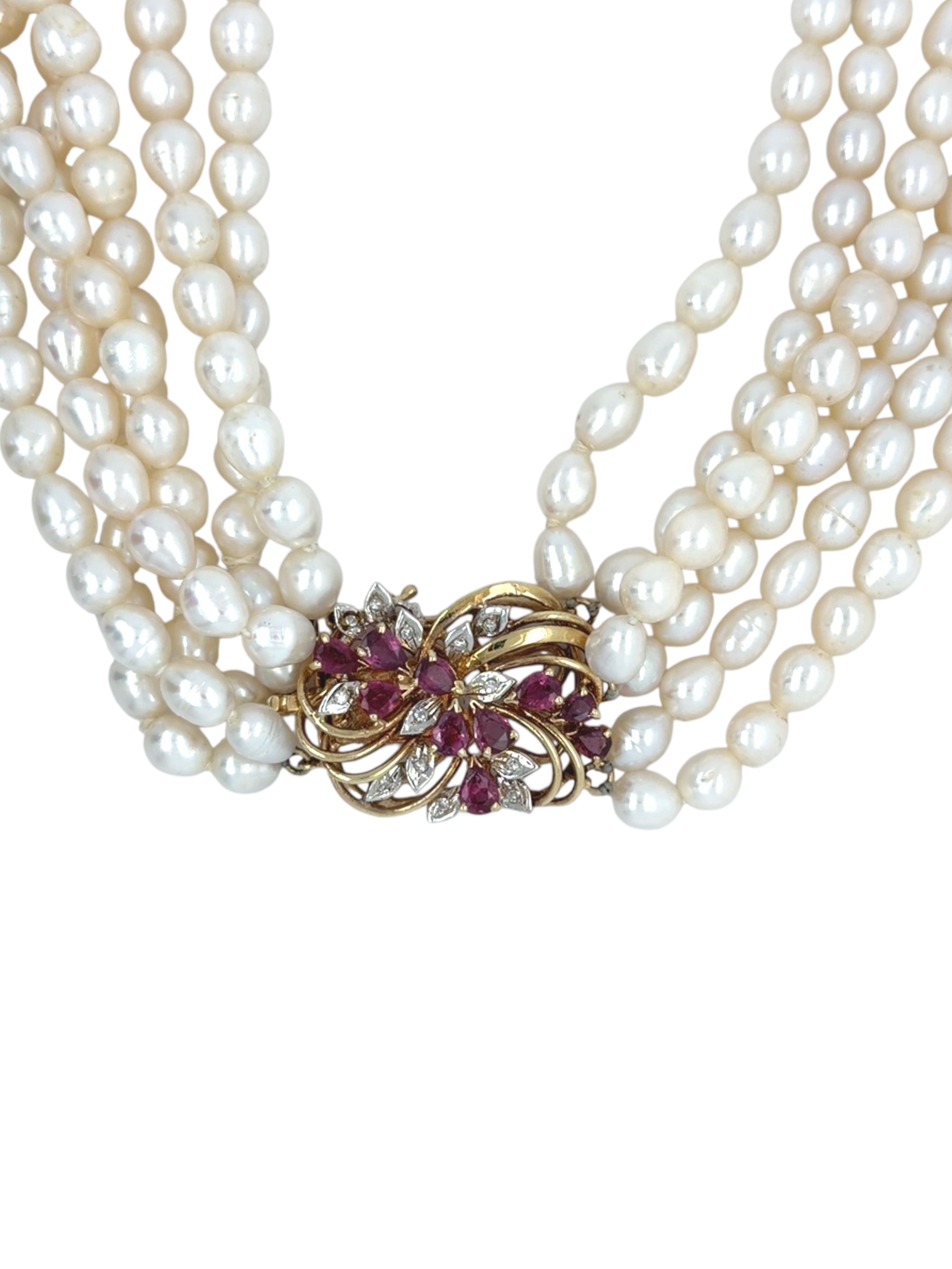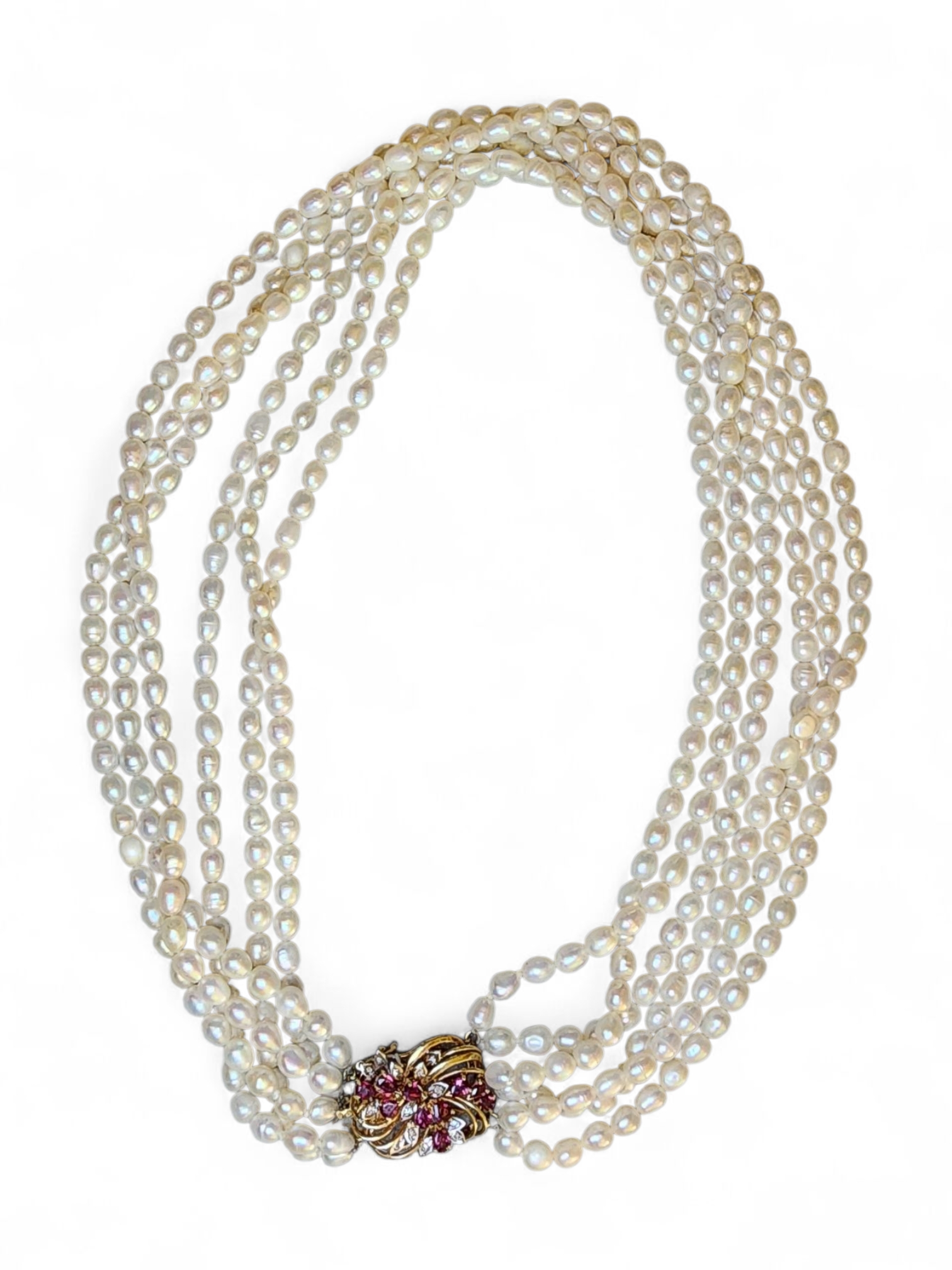 Multi Strand Pearl Necklace with Ornate Clasp | Estate Sale